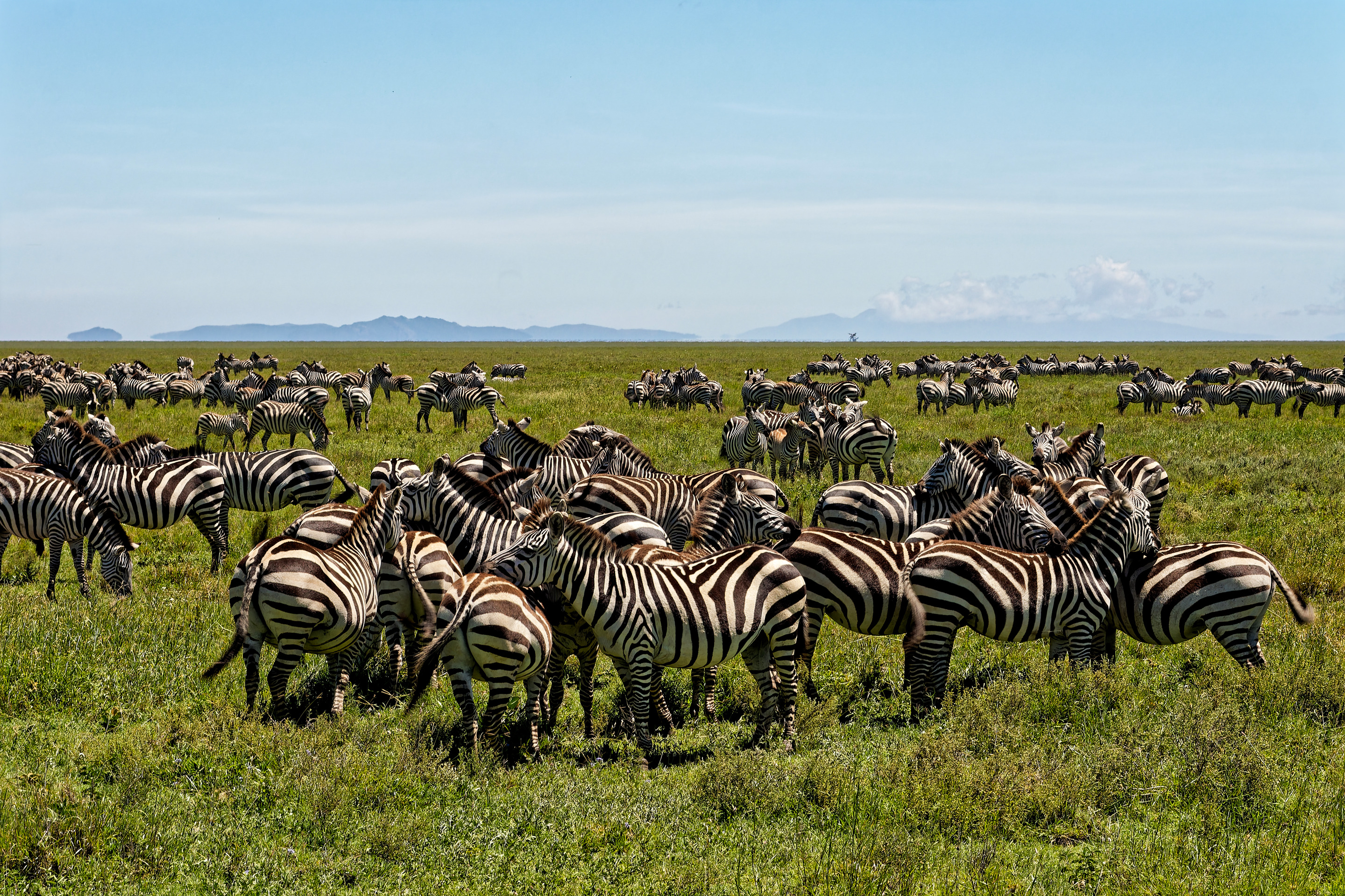 These iconic animals are a vital part of the Serengeti ecosystem. Their coordinated movements and grazing patterns contribute to the health and balance of the grassland. Species common name: Plains zebra